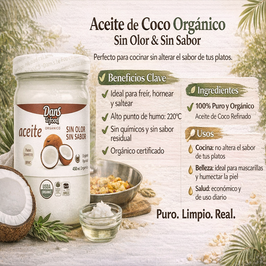 Aceite de Coco Sin olor y sin sabor - Dans Le Food x450ml