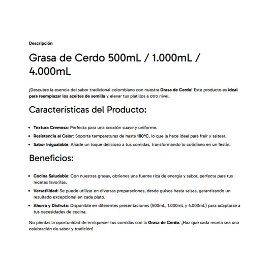 Grasa Orgánica de Cerdo - Grassana x1000ml