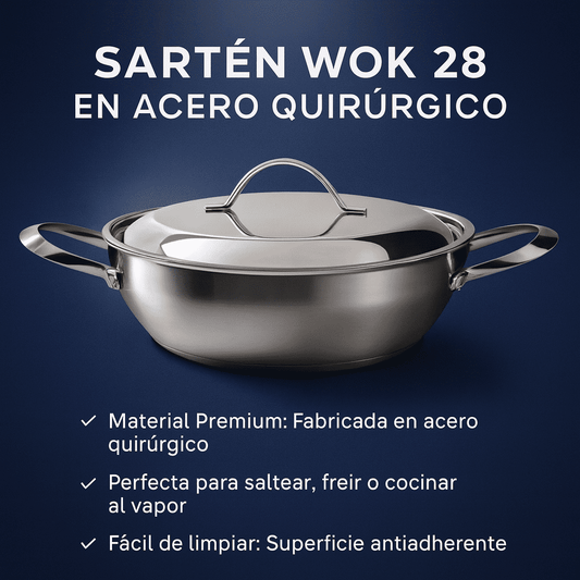 SARTEN WOK 28 EN ACERO QUIRURGICO PURIFIL
