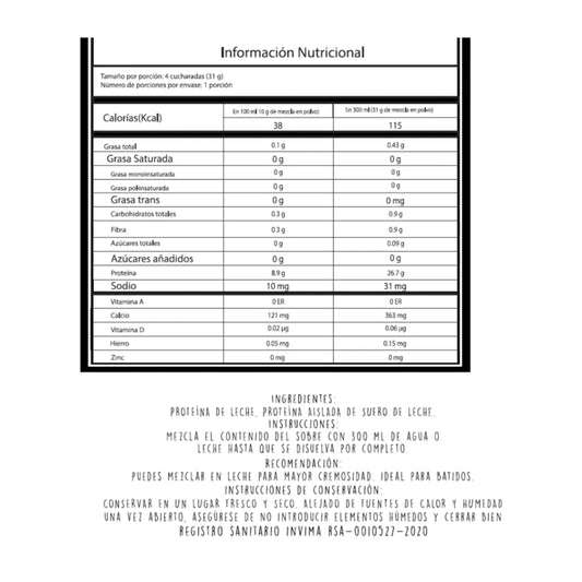 Proteína A Base De Leche Sabor Neutro Sachet - Elemental x31gr