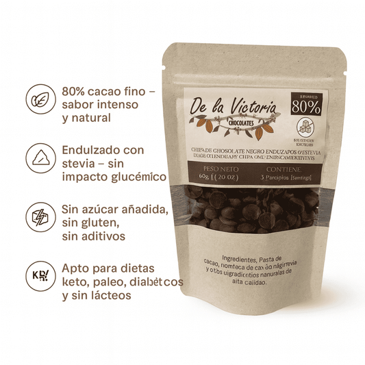 Chips De Chocolate Al 80% Con Estevia - De la Victoria