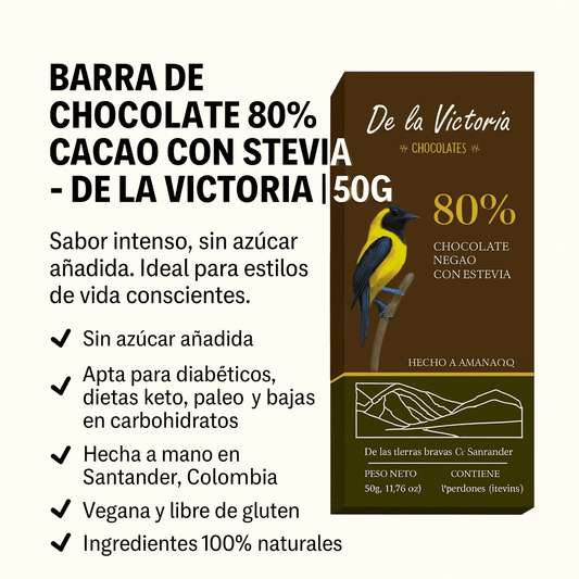 Barra De Chocolate Al 80% Con Estevia - De La Victoria x50g