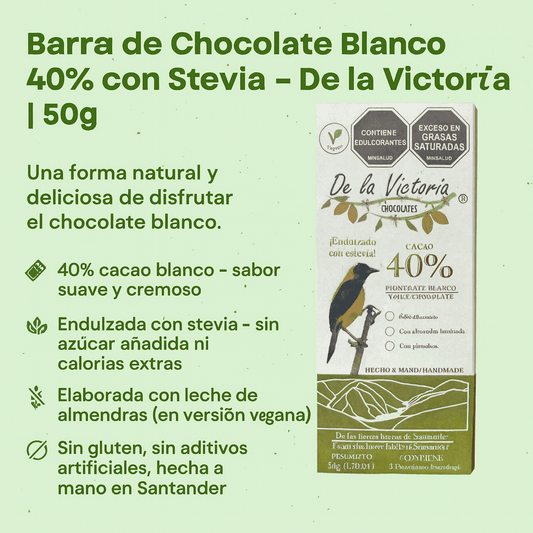 Barra De Chocolate Blanco Al 40% Con Estevia - De La Victoria x50g