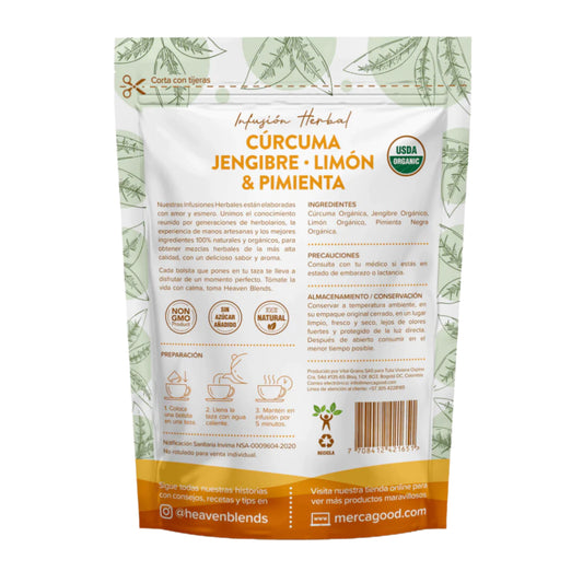 Infusión Herbal Cúrcuma, Jengibre, Limón & Pimienta – Heaven Blends x60g