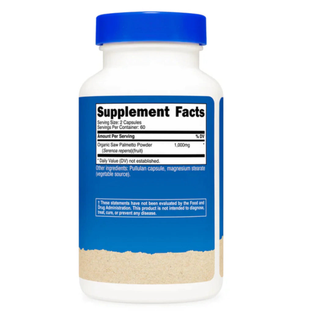 - 1,000 mg de polvo orgánico de Saw Palmetto por porción